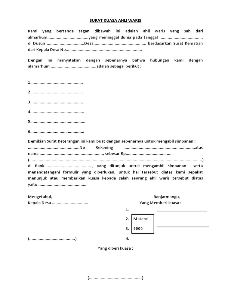 Contoh Membuat Surat Kuasa Ahli Waris