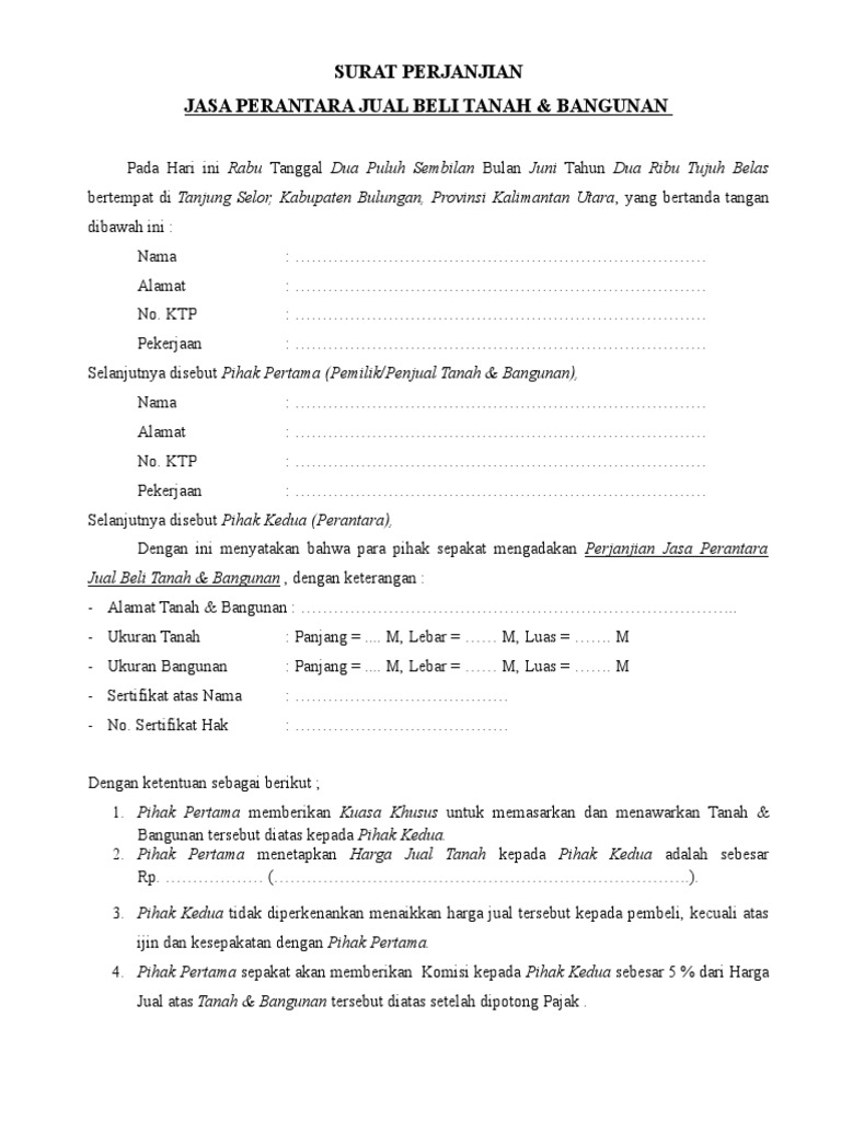 - Contoh Surat Perjanjian Jual Beli Rumah