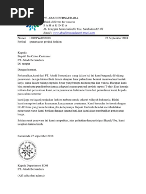 Contoh Surat Penawaran Barang Ke Perusahaan