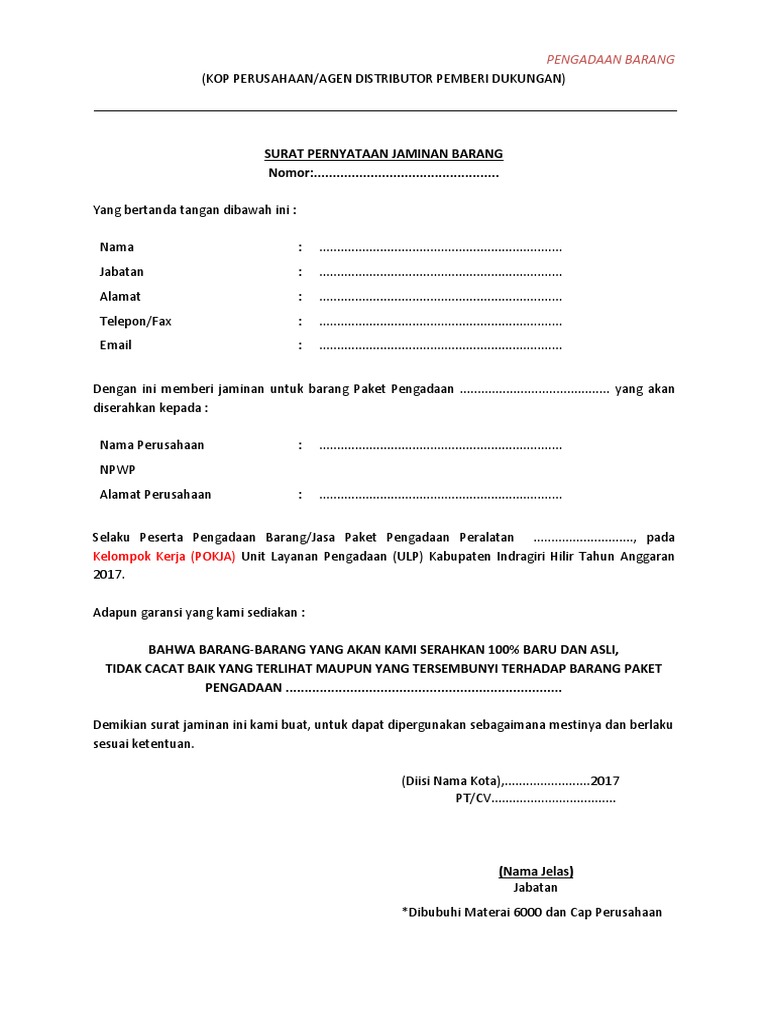 - Contoh Surat Perjanjian Garansi Barangas