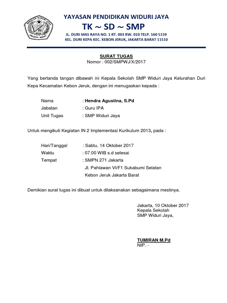 - Surat Tugas Untuk Kepala Sekolah